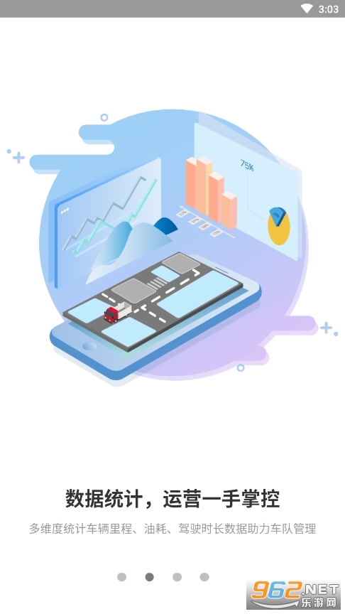 在统计分析中,可已查看车队内车辆的里程统计、油耗统计、行驶时长统计、车队报表及单车月度.