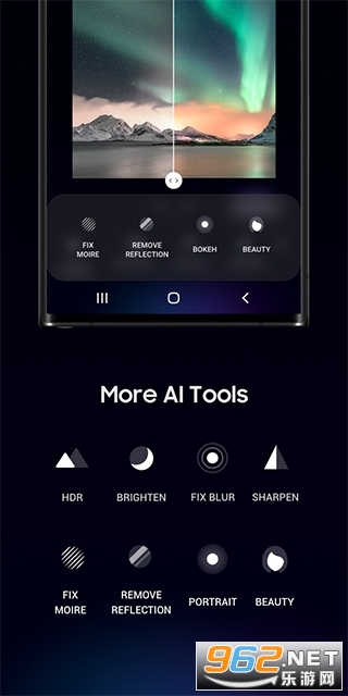 三星Galaxy Enhance-X是一款人工智能图像增强应用程序,它不仅可以帮助你拍摄高质量的图像,还可以使深色图像变亮,修复模糊的照片,并去除图像中的云纹图案。使用Galaxy Enhancer-X应用程序增强图像时,原始照片和增强后的照片都以JPEG格式保存在库中。