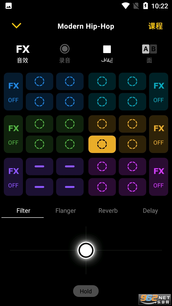 6. 如果为任何带颜色的组启用 FX ON(特效开)按钮,则所选特效将仅应用于该组中的声音。