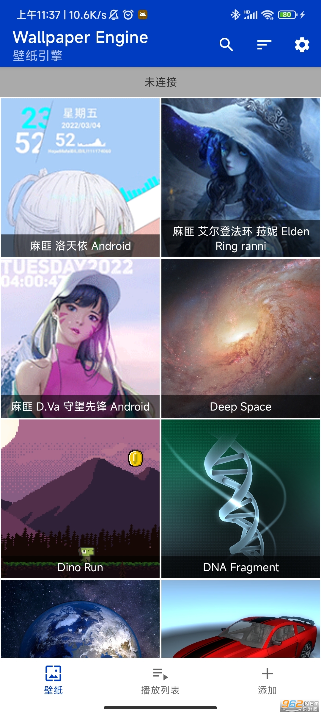 2、在手机上打开壁纸引擎app后,在首页点击右下角的【添加】;