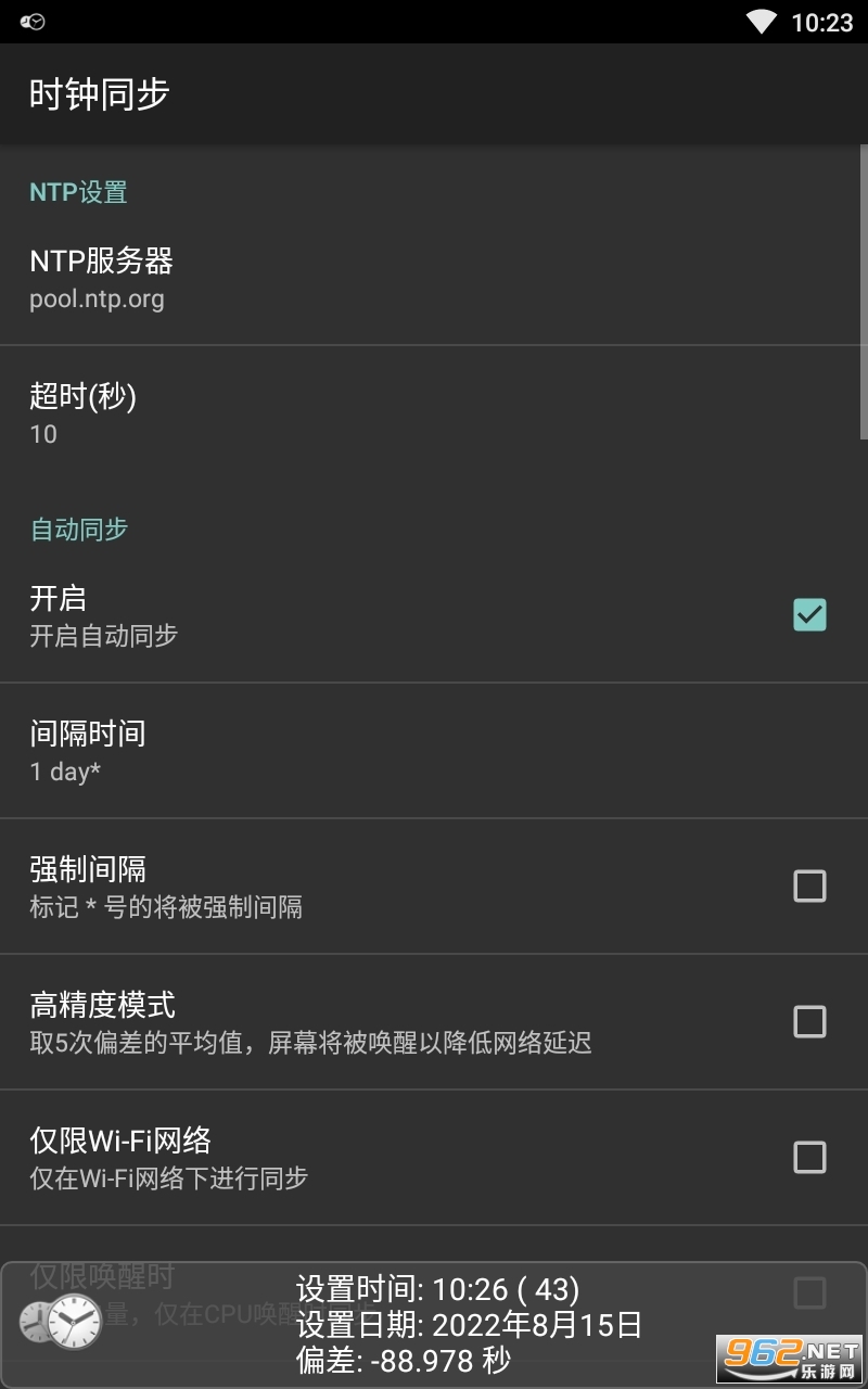 若手机已取 Root 权限,可作自动同步,准确度可达 ~1-20ms。若没有 Root 权限亦可作手动更新,还会有误差提示。