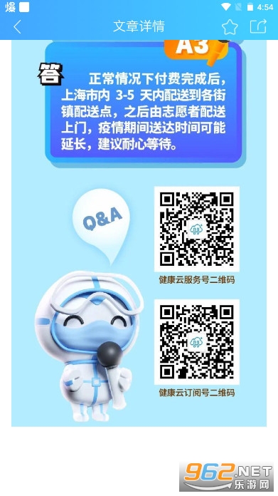 《上海健康云互联网医院》即《健康云》,针对疫情期间居家隔离用户反映的药品配送难、配送时间过长问题,平台于4月15号正式上线“我要配送”功能,通过在线咨询"复诊配药、一键续方“开开展看病咨询,更好的解决用户们的实际需求。