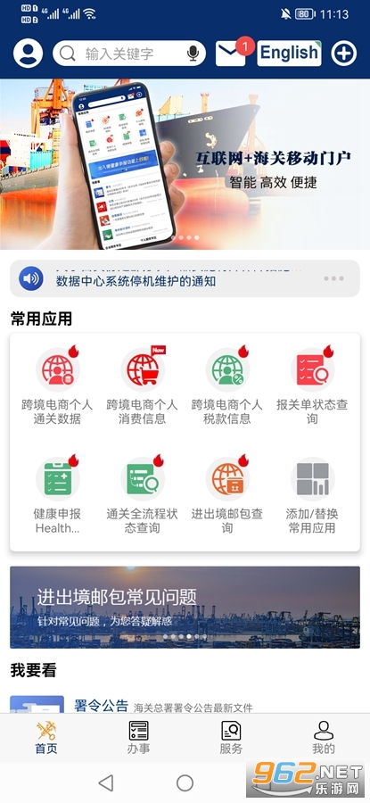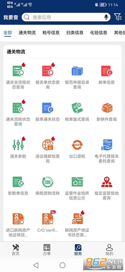 《掌上海关app》是一款海关业务服务平台,掌上海关app有着办事和服务等多个栏目,朋友们可以在办事栏目中进行货物通关申报等,可以在服务栏目去查看物品的通关情况,可以查看物品的全程状态,可以查看税号信息、化验信息等。