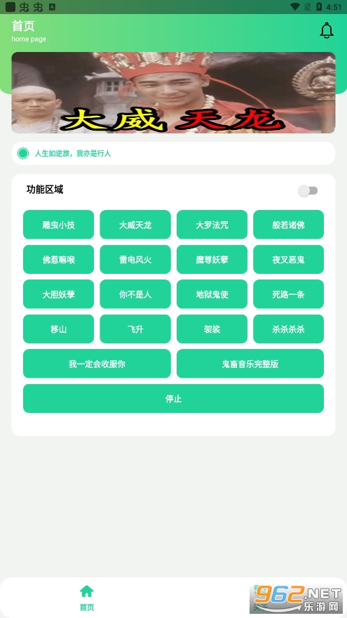 《大威天龙盒v1.0》是一款搞笑语音包软件,以大威天龙的梗为主题,功能类似《先辈盒》,《鸡乐盒》等工具,里面拥有雕虫小技,大威天龙,大罗法咒,般若诸佛,雷电风火,移山,大胆妖孽等众多搞笑好玩的语音包让大家免费使用,支持悬浮窗音乐,操作方便,需要就来下载吧!