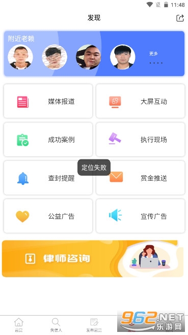 老赖”标记——法信悬赏执行平台以使用者位置为定位点,可扫描出定位点方圆3公里内的“老赖”相关信息,包括家庭住址、手机号及悬赏公告。