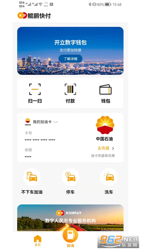 《鲲鹏快付app》是深圳市鲲鹏快付科技有限公司推出的一款中石油加油软件,可以直接利用软件给自己的中石油加油卡进行充值,不用下车直接加油付款,更加的方便,可以查找附近的中石油加油站,查找停车场、洗车店等地方。