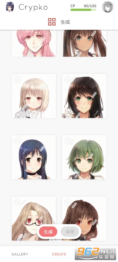 1、游戏利用 GAN (生成对抗网络) 技术,Crypko&8482; 能够自动生成高质量的动漫立绘。