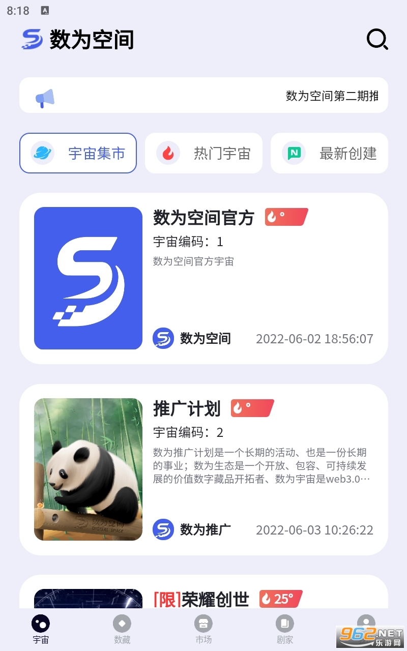 《数为空间》是一款超好用的数字藏品类的平台软件,是国内首家以内容创作数字化服务为核心的元宇宙平台。和热门的ip进行合作,为用户们提供各种不同特色的数字艺术品,自由的进行收藏交易。快来下载吧!