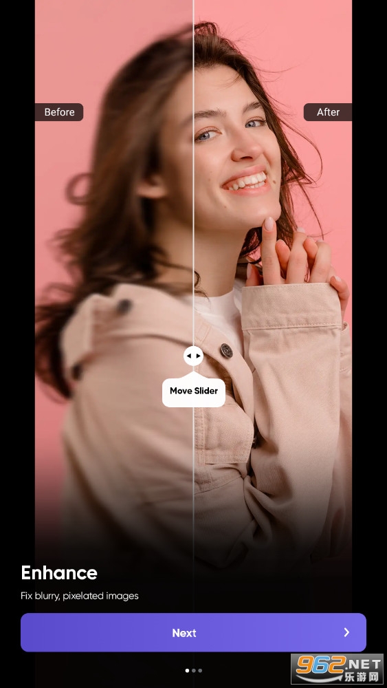 尝试用于人像照片增强的新美化功能,只需轻轻一按即可改善面部美感。提高图片质量,以便您可以上传和分享旧回忆到社交媒体。Photo Enhance 应用程序专为低质量照片而开发,为它们提供高清效果。不仅如此,您还可以一键将任何最近的照片放大到更高的分辨率。