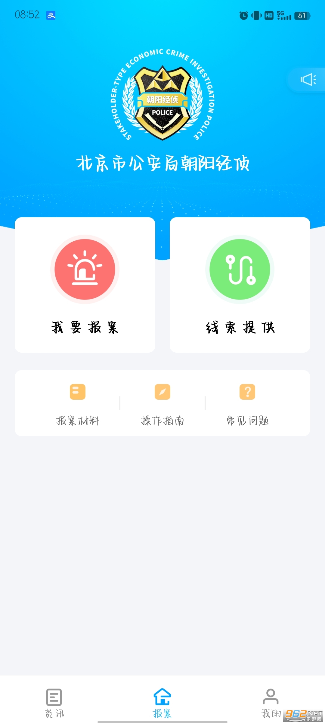 是由北京市公安局朝阳分局官方打造的一款软件,能够通过软件完成各种便捷的公安业务服务。比如学习各种法规政策,直接网上进行报案并且提供线索等,快来下载吧!