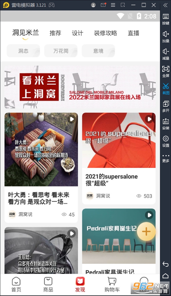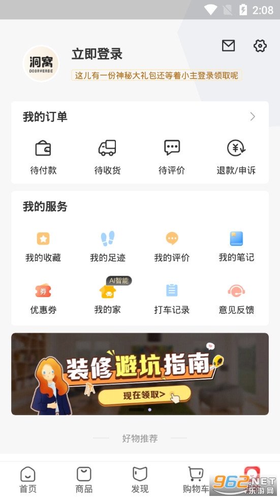 《洞窝app》是北京玳瑁数字科技有限公司制作的一款家居综合服务平台,洞窝app中有着首页、商品、发现、购物车等众多的栏目,可以在平台定制自己想要的家具,可以观看沙发、电器、床、门等各种家具产品,一键下单,快速送达。