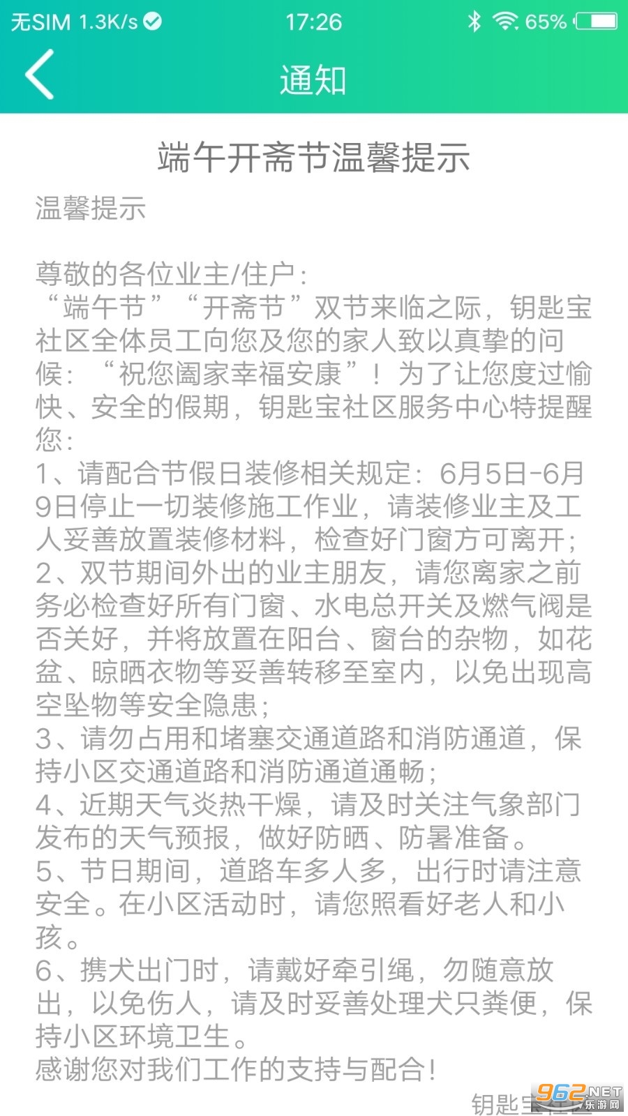 5、消息通知,随时接收最新的水电通知、物业通知、生活缴费等信息。