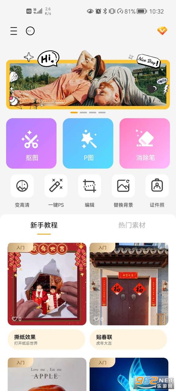 一款好用的p图修图软件,你可以调整图片的各种数据自由的进行裁剪和融合,在图片上加入文字或者特殊的效果,你也可以使用各种模板来对你的照片进行处理,还有着超多的素材供你使用,推荐给有需要的用户。