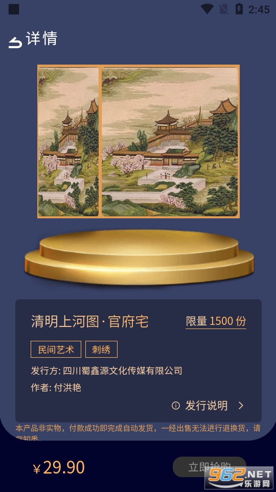 1、平台严格筛选藏品,从众多藏品中选择有升值空间、版权可靠、合法合规的藏品;