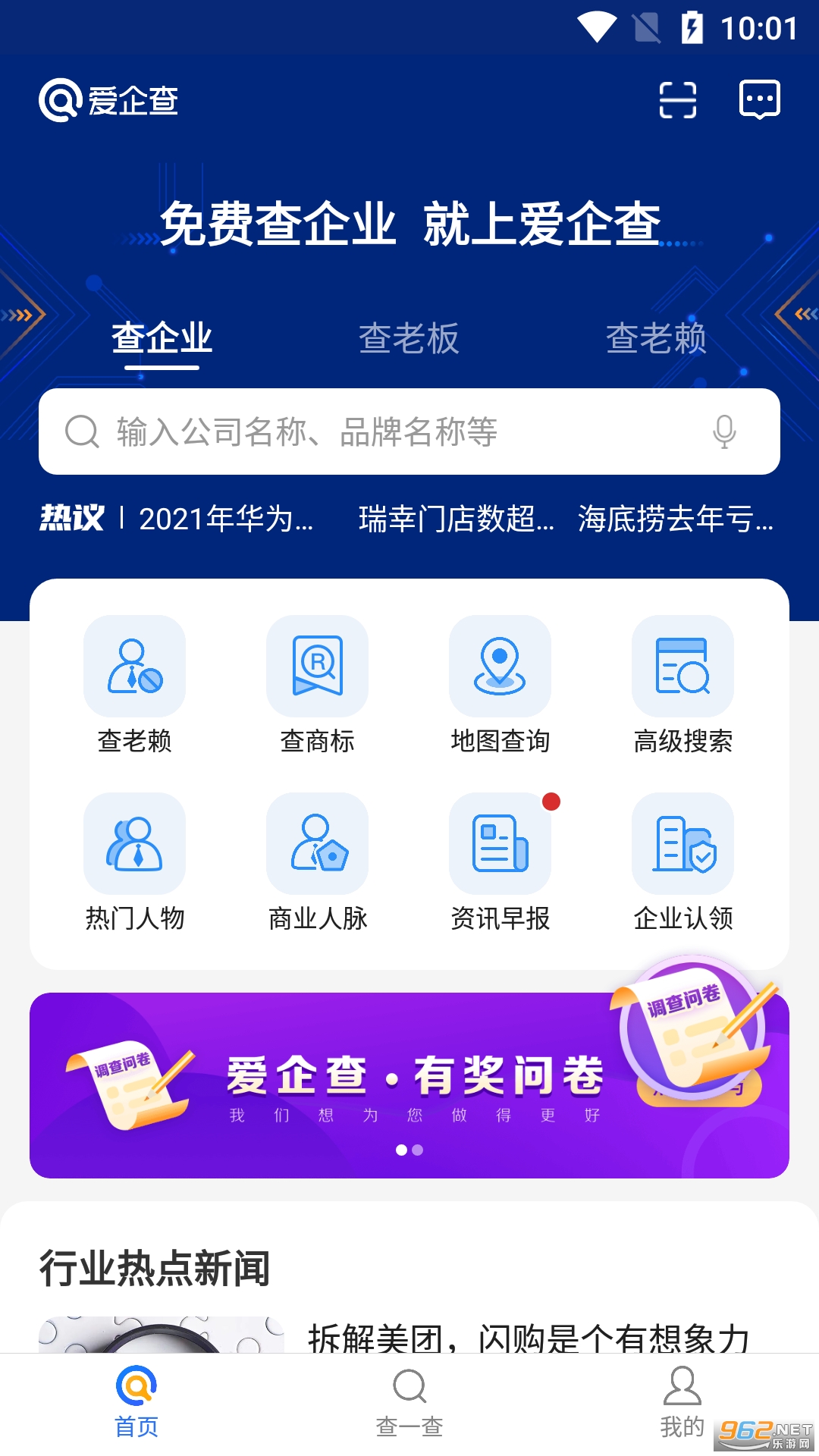 《爱企查永久免费版》为用户们带来了一款查询企业信息,老板信息,老赖信息的app。进入软件后提示更新大家一定要选择忽略。虽然不是会员但是给大家破解了永久免费查询的功能,下面就是小编为大家带来的软件下载地址!