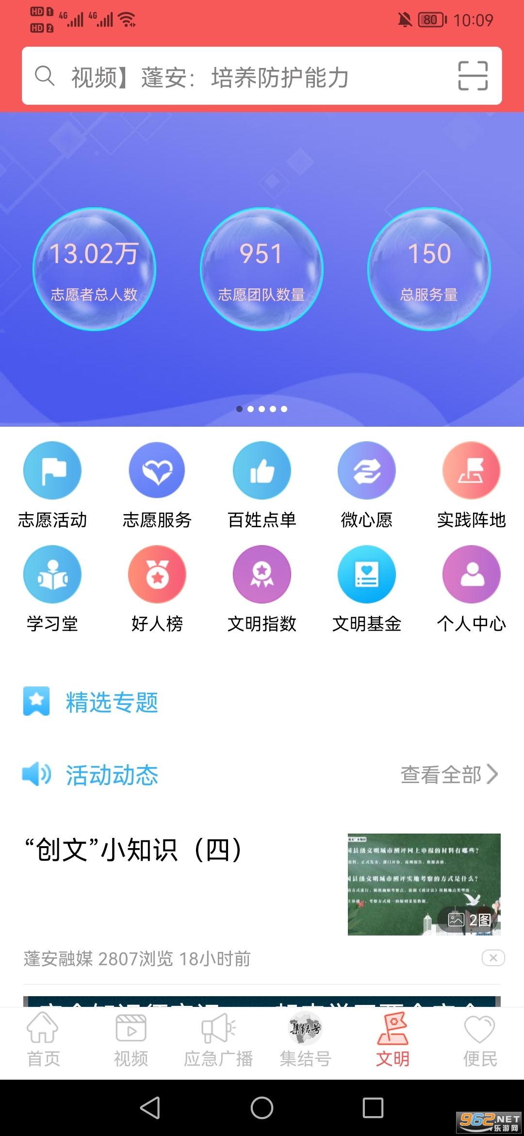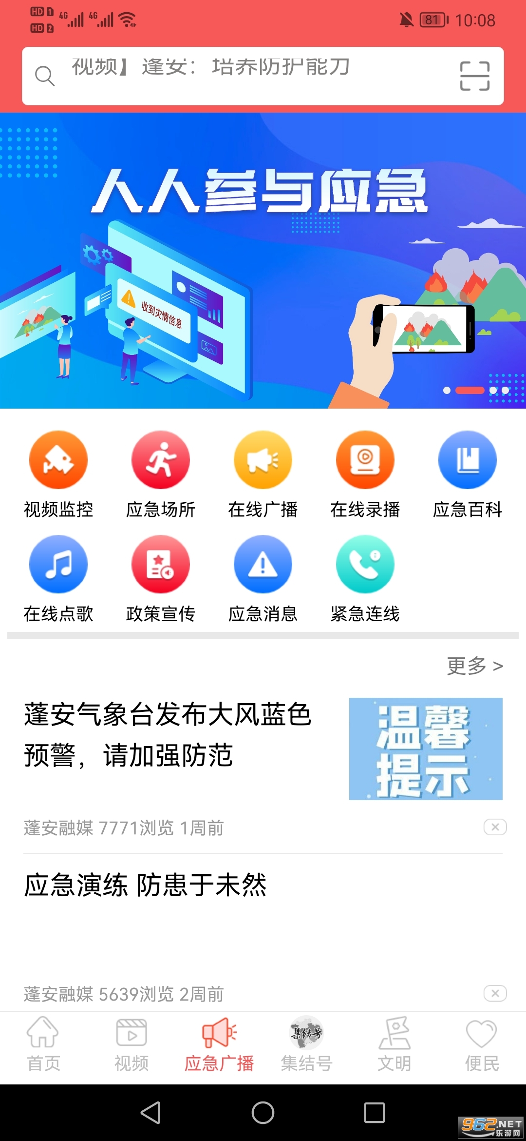 《赋圣蓬安app》是蓬安融媒体中心推出的一款蓬安本地的app软件,赋圣蓬安app中有着视频、应急广播、集结号、文明、便民等多个栏目,可以在软件中查看蓬安你和各地方的新闻资讯,可以观看一些视频、参加一些志愿者活动等。