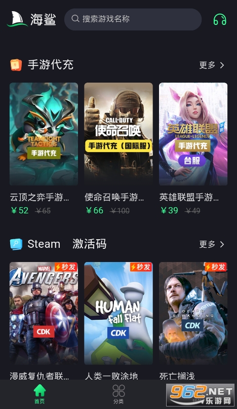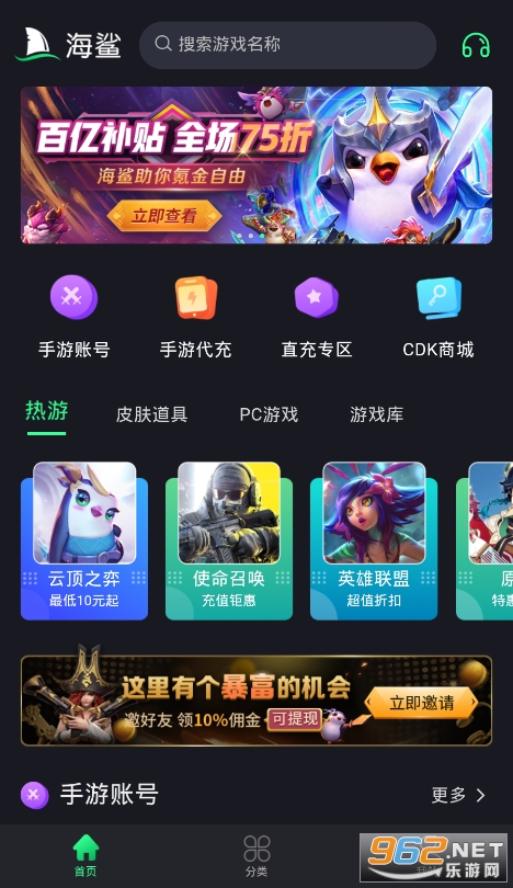 海鲨代充是一款非常专业并且好口碑的游戏账号充值平台,平台累积了各种游戏的账号,覆盖了超多热门的游戏,用户可以通过这款软件进行游戏代充,平台中所有的商品都是正规渠道