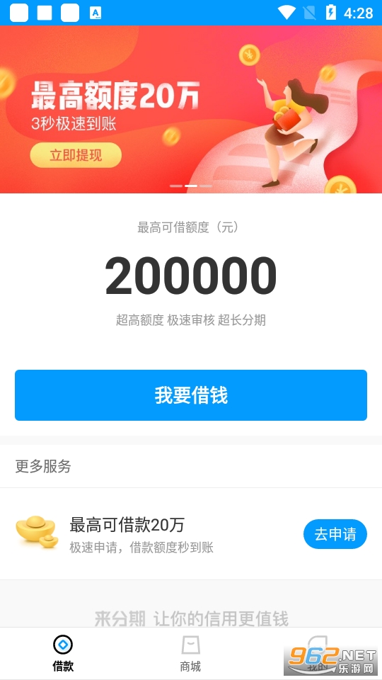 国内发展很快的一款以分期商城为核心的借贷类的软件,享受超快的到账速度,让你能够把自己的信用换成钱,轻松的申请贷款或者分期支付购买你想要的东西吧!