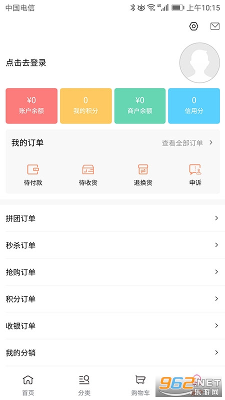 6、划分不同的订单列表,账户中心划分展示拼团订单、秒杀订单以及抢购订单等不同订单管理列表;