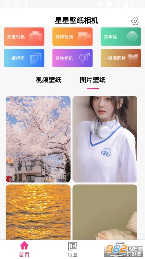 《星星壁纸相机app》是一款多功能的壁纸相机软件,它既有壁纸功能又有相机功能,并且壁纸又分为图片壁纸和视频壁纸,相机功能一般是一些特效相机功能,有变老相机、漫画脸、变年轻、性别互换等等,另外还有抠图和视频制作等功能,都是可以免费体验的。