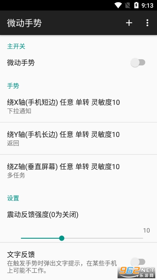 《微动手势app安卓版》是一款为朋友们打造的通过手势来控制手机的软件,有时候我们不想要去使用一些按键来控制手机,可以使用微动手势app来通过一些简单的手势来控制手机,比如沿着X轴转动、沿着Y轴转动等来设置后退、查看下拉等功能。