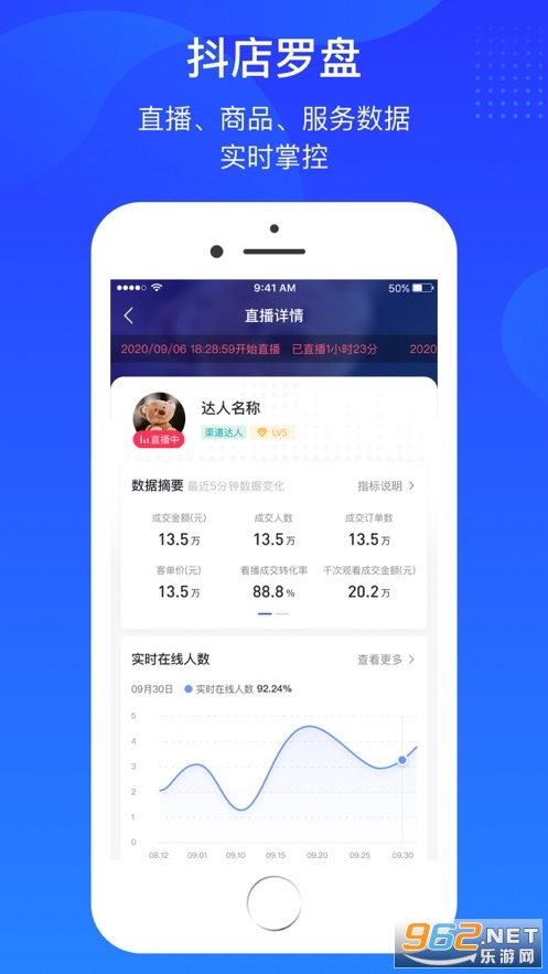 【抖店罗盘】支持查看核心数据指标及变化趋势,支持查看直播间、商品、服务数据详情