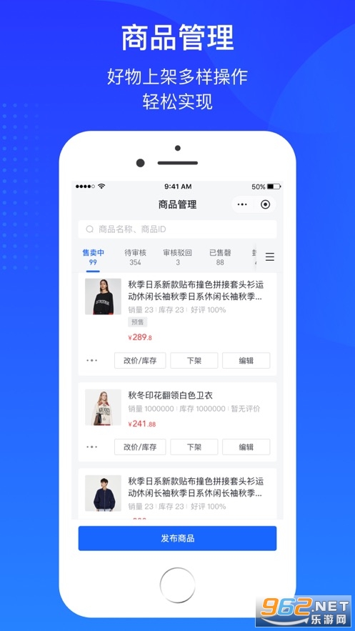 【商品管理】支持上下架商品、调整价格库存、修改详情等商品管理操作