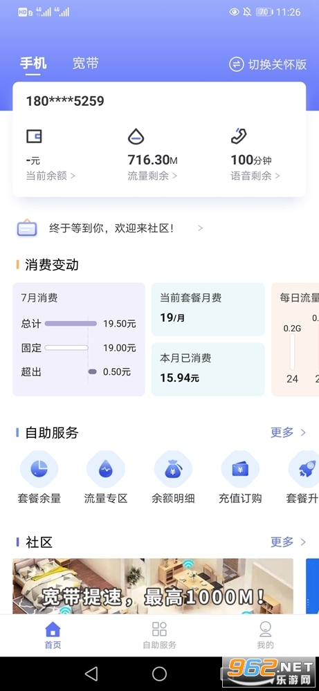 《10000社区》是北京东信网泰通信技术有限公司推出的一款电信服务平台,为广大的电信用户提供便利服务,可以在平台查看自己的手机话费、流量、通话时间,套餐剩余情况等等,可以在线办理一些业务,比如购买流量、更换套餐、办理宽带等等。