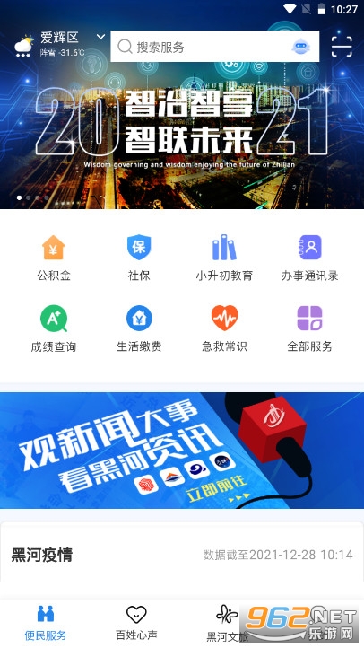 我的黑河以一个APP畅享城市综合服务为目标,基于大数据技术,构建可持续扩展的应用生态,实现服务百姓、采集民情、宣传黑河的目的。目前APP覆盖服务共计21大类