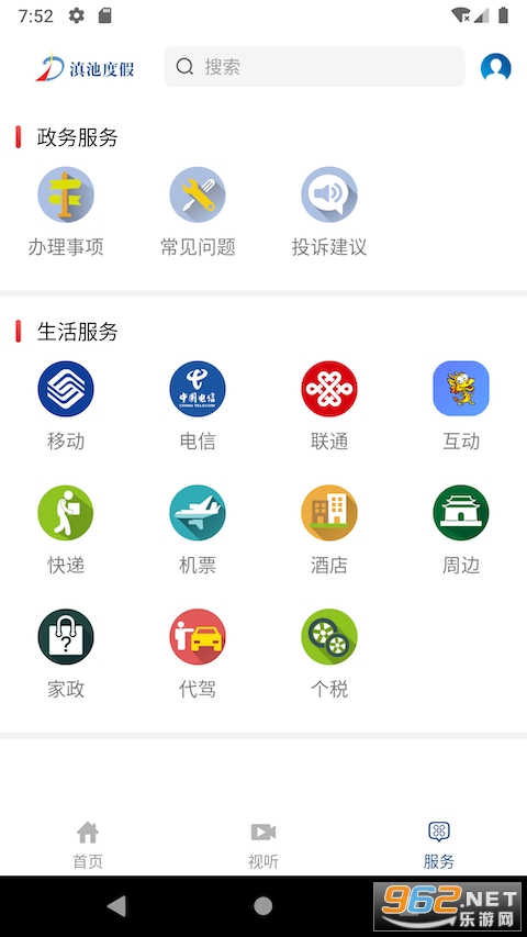 切换到服务页面,政务服务和生活服务都可以自由预约办理