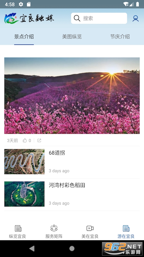 美图纵览,发布众多景点图片,及时不出门也可以尽情观看美景,了解本地景区的情况;