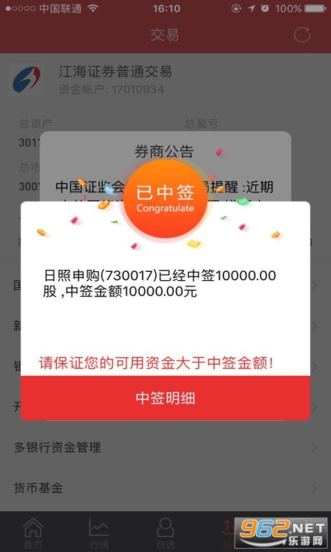6、一键打新:根据新股额度自动配置打新资金,轻松一键点击即满额申购;