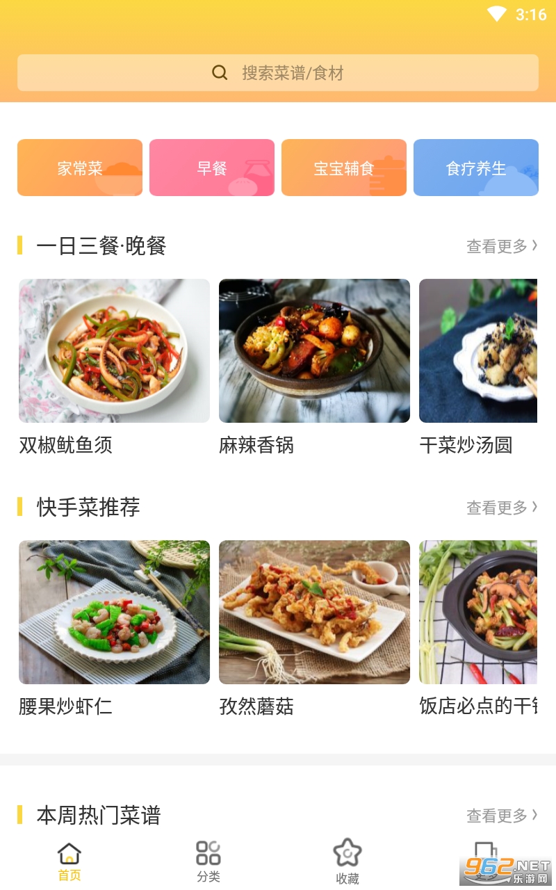 强大便捷的搜索功能,首创摇滚美食搜索法。随意摇动手机,便可出现匹配菜谱。更支持按口味、按菜系、按名称的全方位搜索。