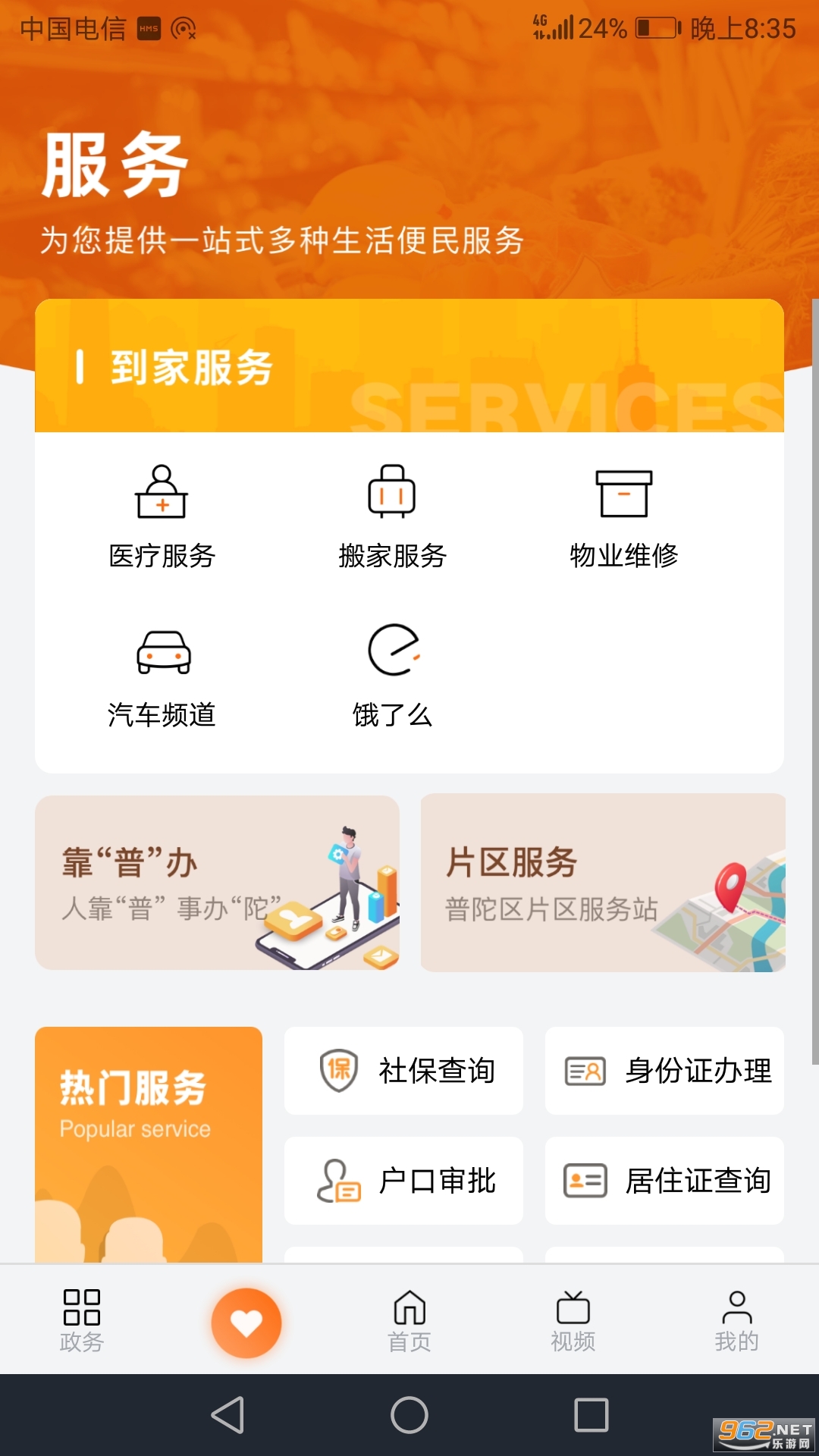 提供一网通办、在线预约、查看排队等服务