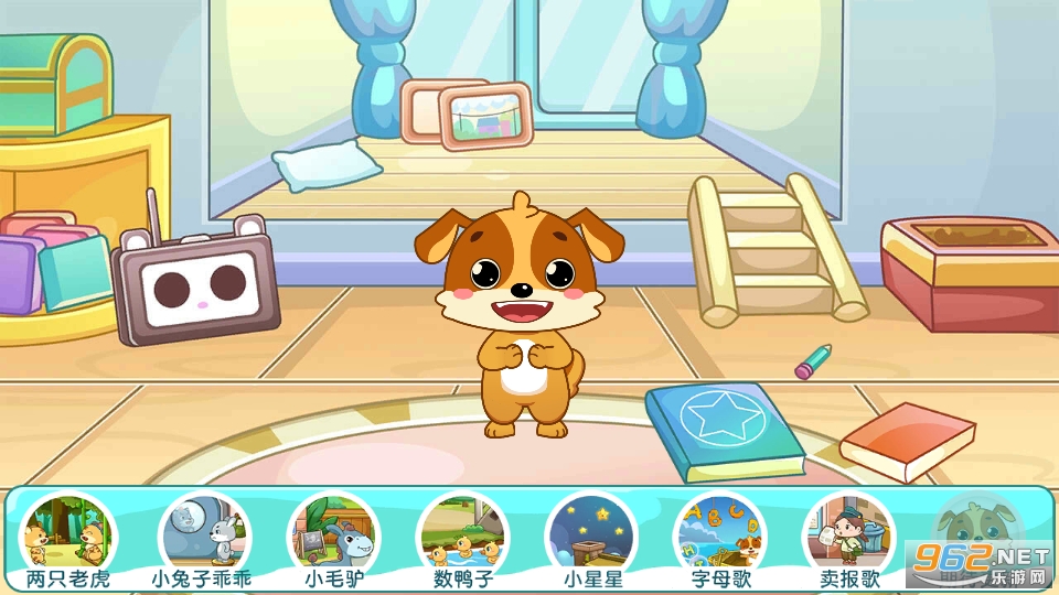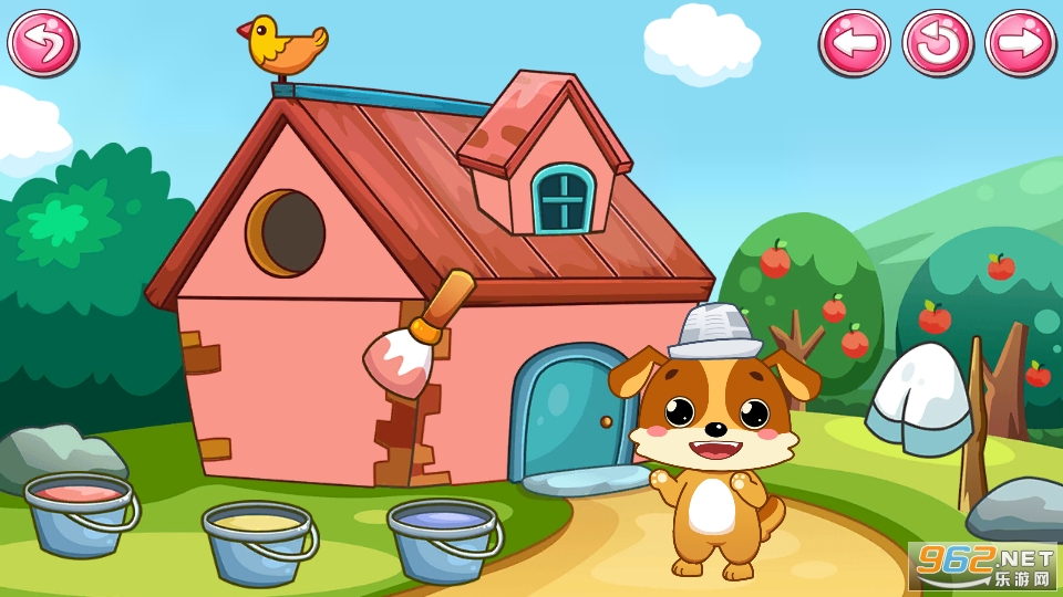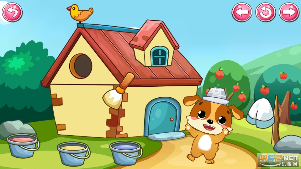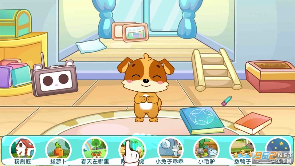 2.每首歌曲的场景都有不同的动画互动,你可以像粉刷匠一样刷房子,可以拔萝卜,可以帮小兔子乖乖赶走大灰狼,可以给没有耳朵的老虎戴上假的耳朵......趣味互动带给来更多欢乐!
