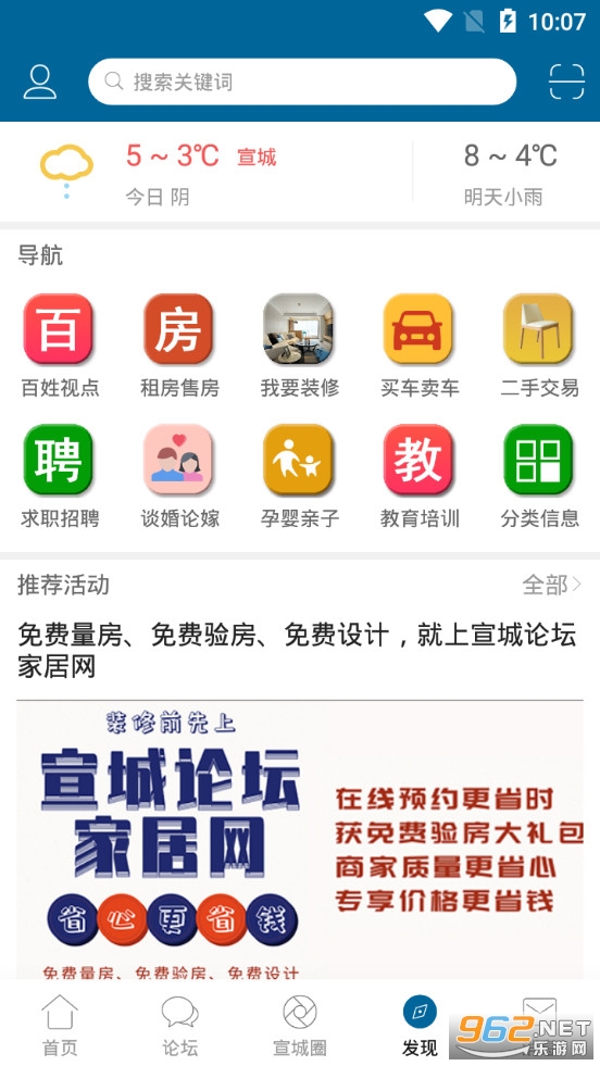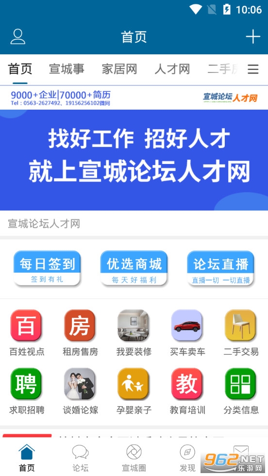 宣城本地服务论坛平台,这是手机版可以直接在手机上访问,论坛中有着众多的分类,比如售房租房、二手交易、招聘等等,可以在这里和宣城的朋友一起聊天交流等,有需要的朋友可以下载试试。