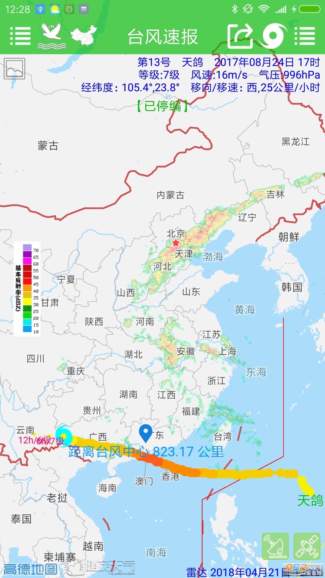 台风速报支持查看当前台风路径实况与预报,也可查询历年过去的台风信息,并且可切换普通地图和卫星地图模式,还可以计算出台风离自己的距离,方便沿海地区用户及时关注台风实时动态。同时还支持了实时台风云图与台风雷达图查询,结合台风地图能够直观的了解台风动向,及时做好预防强降水带来灾害的准备;支持查询天气流场与扰动路径与概率预报,关注台风从胚胎开始。