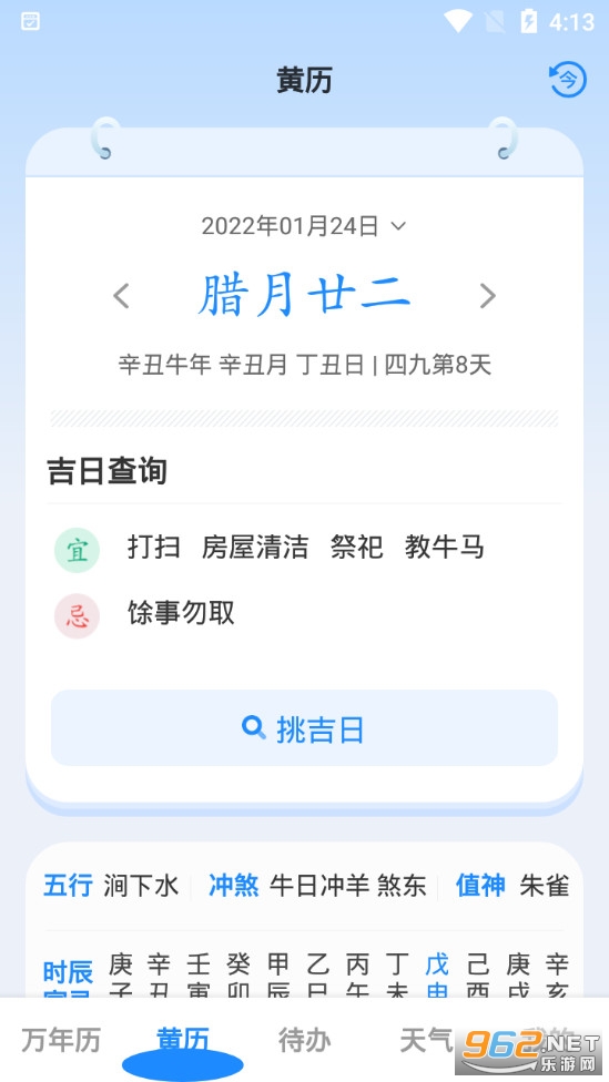 3、每日宜忌帮您知晓什么时候宜忌:嫁娶、乔迁、开业、远行、求医、动土、安葬、祭祀、会友等;