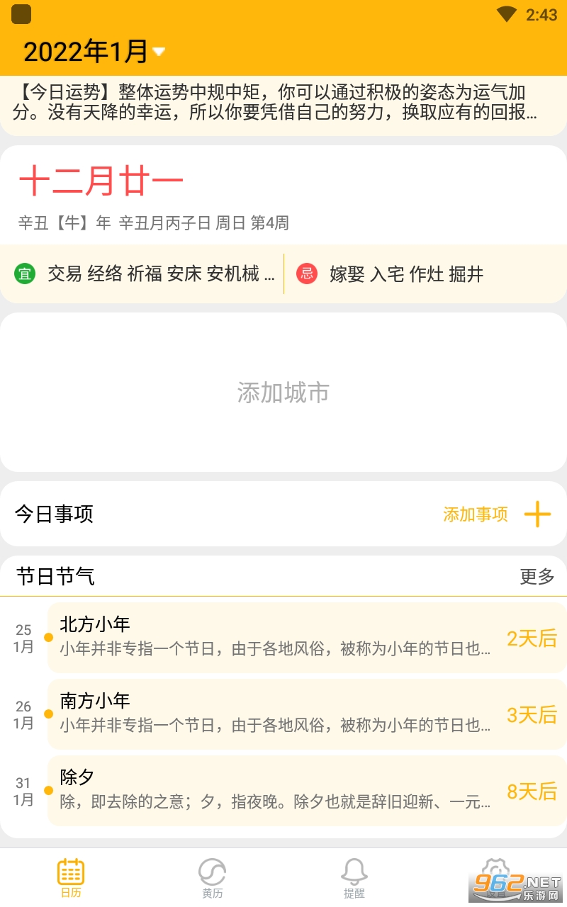 2)节日和节气:国内外传统节日和中国的二十四节气日期标注提醒,还有国家法定节假日上班时间调整,更有详细的科普介绍;