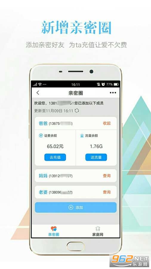号码、余额、积分、流量首页清晰呈现,动态仪表盘展示流量;