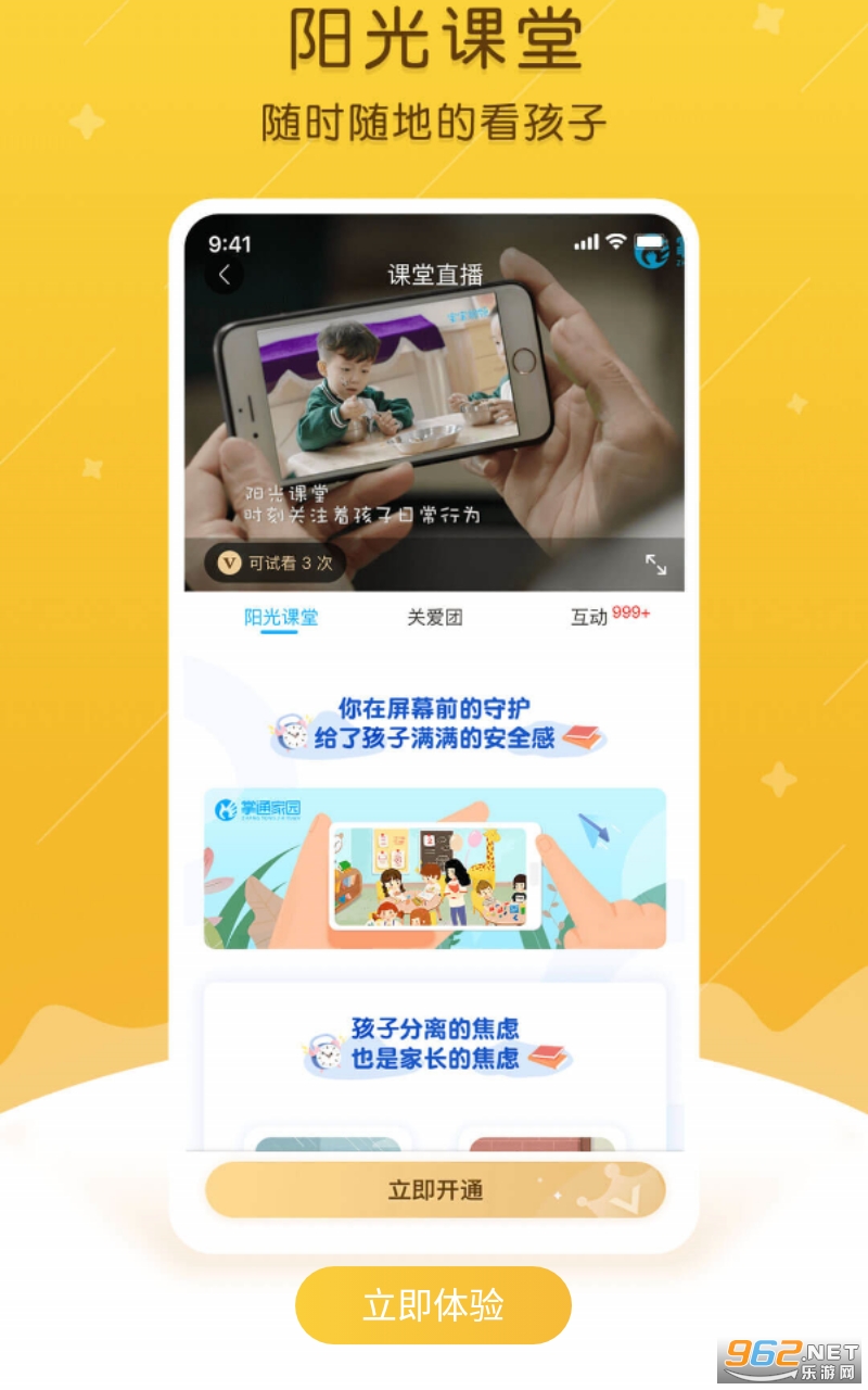 开放式的远程视频直播,让家长能随时随地观看宝宝的在校动态。