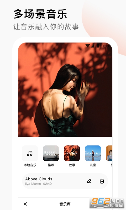 -各种风格的音乐:热门音频、故事叙述风、潮流、摇滚或使用自己的歌曲