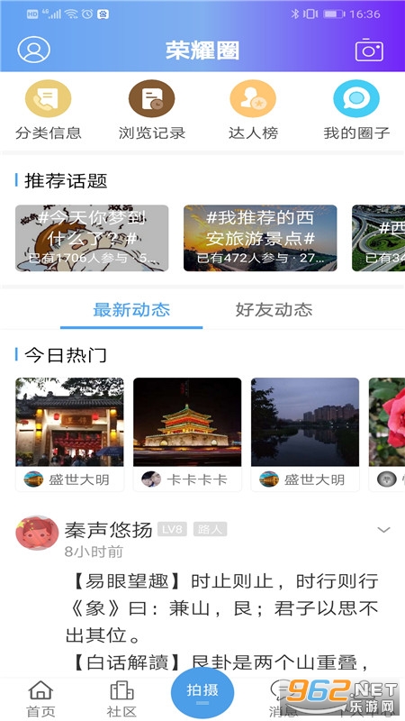 《荣耀西安网》是由西安荣耀网络传媒有限公司开发的西安本地的社区软件,在这里你可以分享你的生活,了解最新的资讯,各种本地发生的大事小事都可以进行关注了解,更加好的生活在西安。快来点击下载吧!