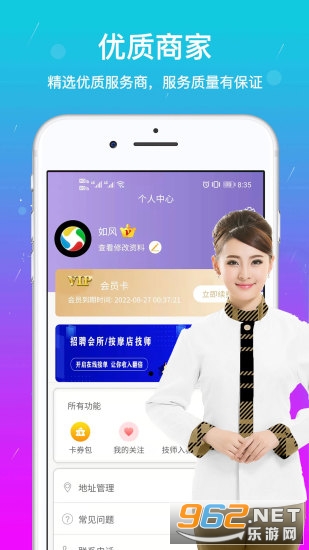 《美缘按摩安卓版》是一款非常给力的专业按摩服务软件,这里为用户提供最好最棒的服务功能,软件中的技师都是经过专业审核和实名认证的,可以带给您最优质的服务。感兴趣的朋友欢迎来962下载试试吧!