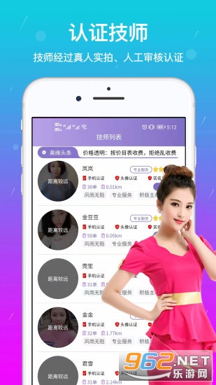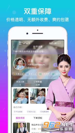 真人审核,技师身份认证、头像认证、资质认证、健康认证,保证安全
