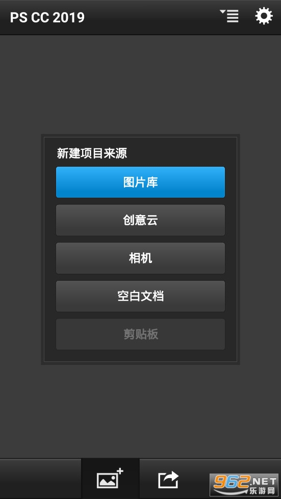 照片图库、创意云、设备相机、空白文档、剪贴板,创意云支持同步上传功能,需注册Adobe账号