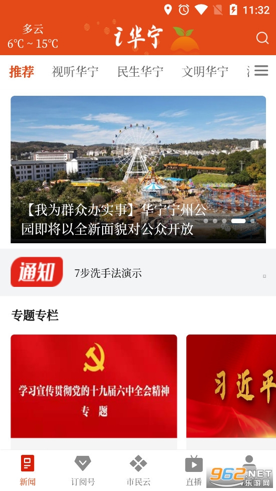 《i华宁app》是华宁县融媒体中心推出的一款华宁新闻资讯软件,i华宁app有着新闻、订阅号、市民云、直播和我的多个栏目,朋友们可以在新闻栏目去阅读华宁的各种新闻资讯,可以在直播栏目看电视、看直播、听广播等,了解华宁的实时动态。