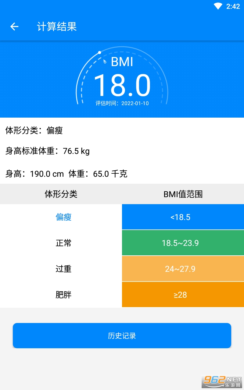 2 标准体重计算,根据身高体重,自动计算标准的体重参考值,方便决策减肥还是增重