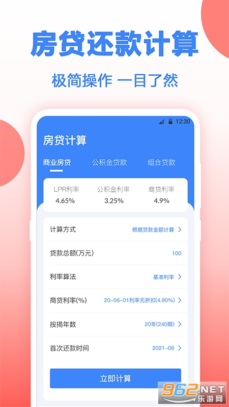 房贷计算器——2026年LPR利率房贷计算器,一款集房贷计算器、复利计算器、购房宝典、购房流程、购房资讯等于一体的应用,计算功能超级强大,操作简便,只要输入金额,同时可在等额本金和等额本息还款模式中随意切换,1s为你算出还贷金额。