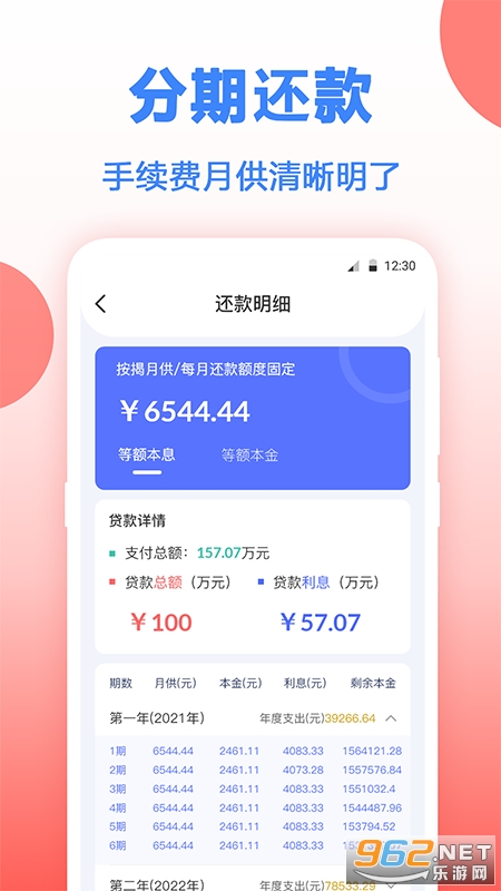 2、还款明细,购房人员每月应该还多少金额会生成一个明细,方便用户查询。